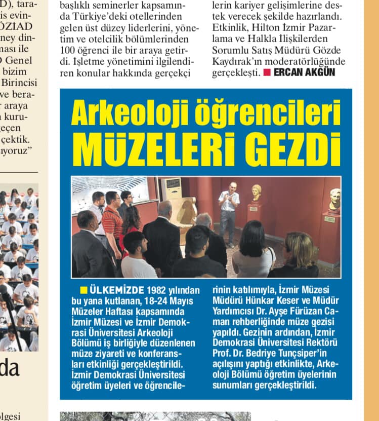 İDÜ Arkeoloji Bölümü ve İzmir Müzesi iş birliğiyle düzenlenen müzeler haftası etkinliğimiz basında yer buldu.