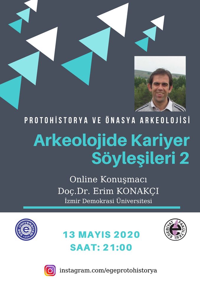 İzmir Demokrasi Üniversitesi Arkeoloji Bölümü Öğretim Üyesi Doç. Dr. Erim Konakçı, Ege Üniversitesi Protohistorya ve Önasya Arkeolojisi Anabilim Dalı’nın" düzenlediği Arkeolojide Kariyer Söyleşileri başlıklı etkinlikte davetli konuşmacı olarak yer aldı.